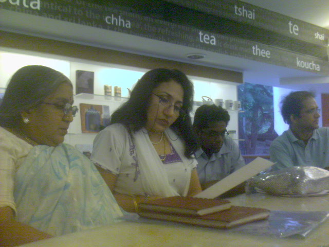 then Rhumjum, anuradha and janani came.. and after a while Shyla, vinay and Ranjan de came… am meeting elka,janani,ranjan for the 1st time too.. had met others during past readmeets, at amethyst n harish’s house.. were talking abt how i had come to the place earlier for the e-author prize giving function n all…