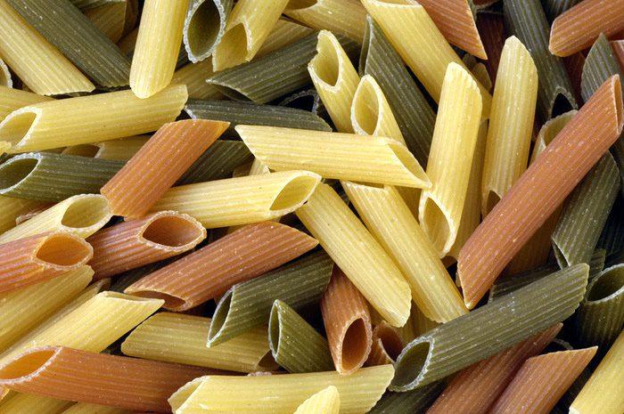 Penne, the traditional small pipe shaped pasta… Most commonly found and used… These come in single colour and Tricolour as well..