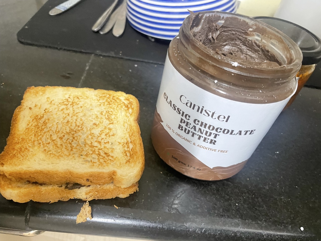 - Taste: The peanut butter offers a rich, authentic peanut flavour with a perfect balance of nutty goodness and creamy perfection. It’s versatile, enhancing the taste of various foods, from toast to smoothies. For a change, I decided to order the Chocolate Peanut Butter and so glad I did that. I made a nice Chocolate Peanut Butter sandwich for an evening snack, and also added some to the smoothie bowl one morning. It worked on both.