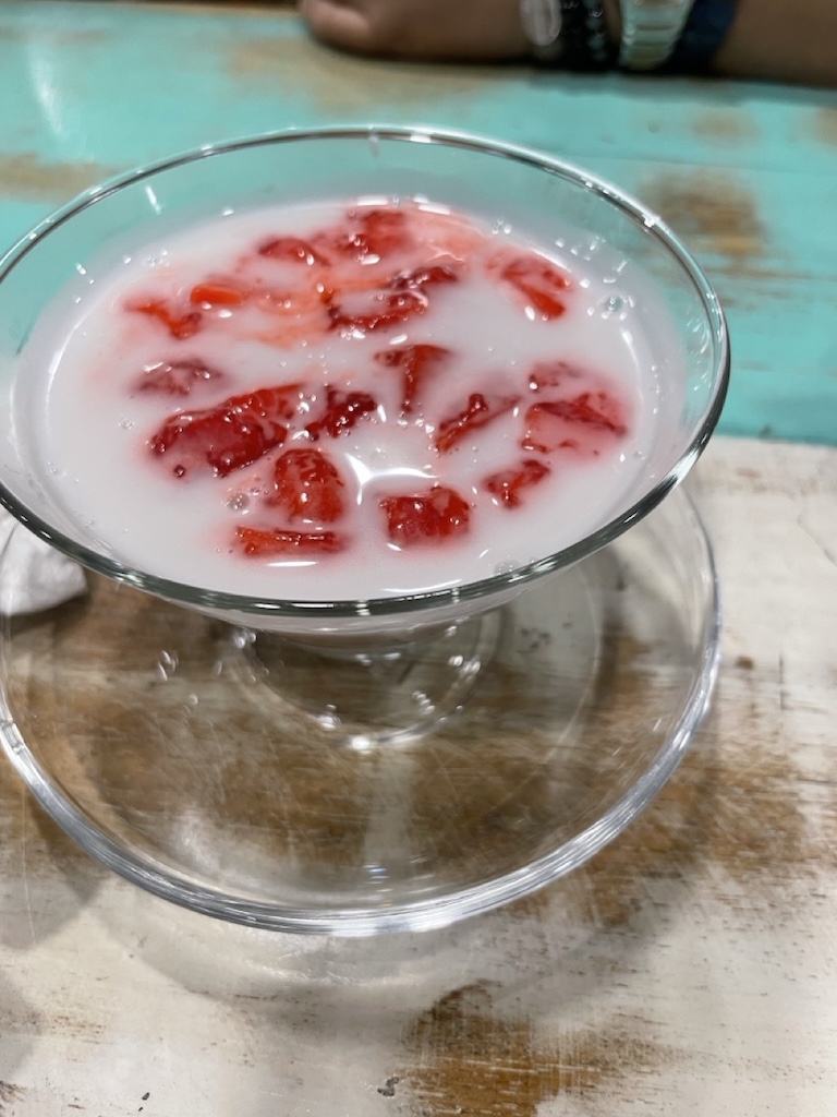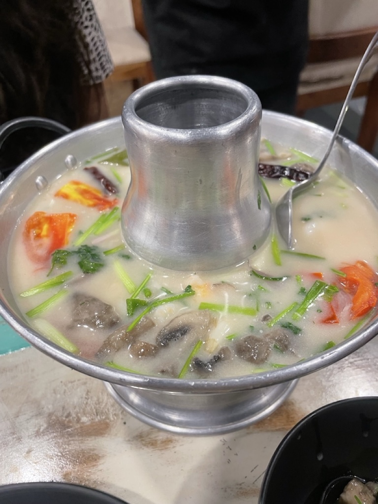 Personal favourite? The Mango Sticky Rice that the meal began with and ended as well… Apart from this, we also had Thapthim krop [water chestnut in sweetened milk] – Both these are comforting, rich, and a perfect palate cleanser after all the chatter and chilli.