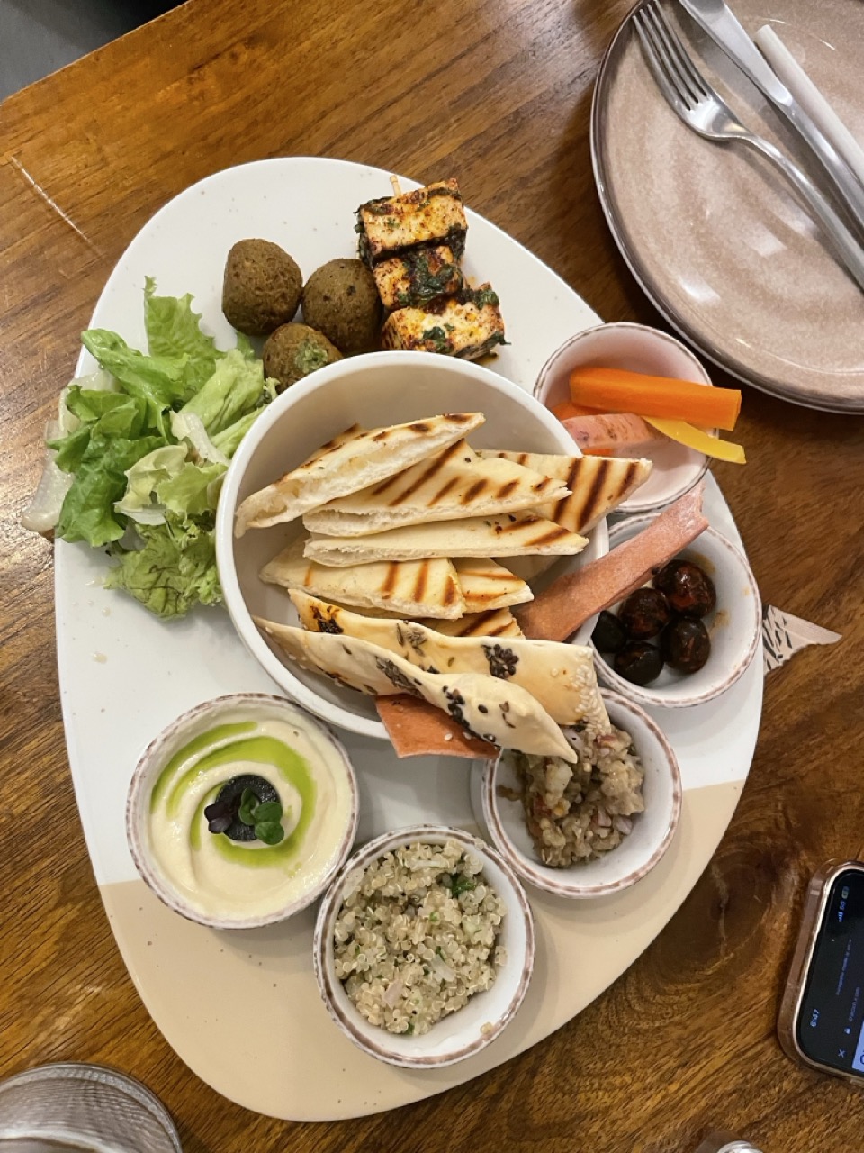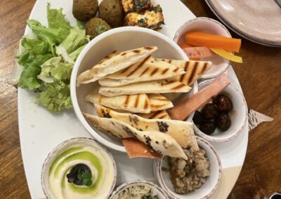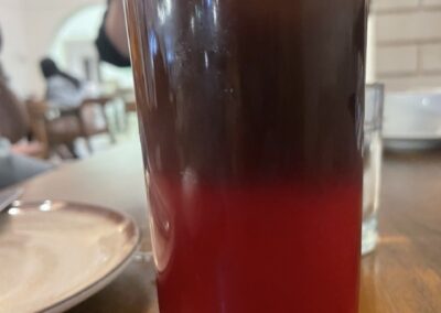 The aesthetics are understated but thoughtful—wooden furniture, little potted plants, and sunbeams streaming through the windows. There’s an unspoken warmth in the way the place is put together, making it feel more like someone’s living room than a commercial café. They have a first-floor space as well, one that includes a small shelf with books and a nice chair to sit read in. We used the balcony last evening for a small video shoot, and it was beautiful. We also enjoyed some summer rains along with a cold americano and some yummy rich chocolate cookies. During my earlier visit, I had the Vietnamese coffee, Flat white and we also tried the Mezze platter. Apart from this, they have a stone oven outside for fresh pizzas. We also tried the Strawberry brew- strawberry mulched, with some cold water/soda and black coffee- was quite refreshing.