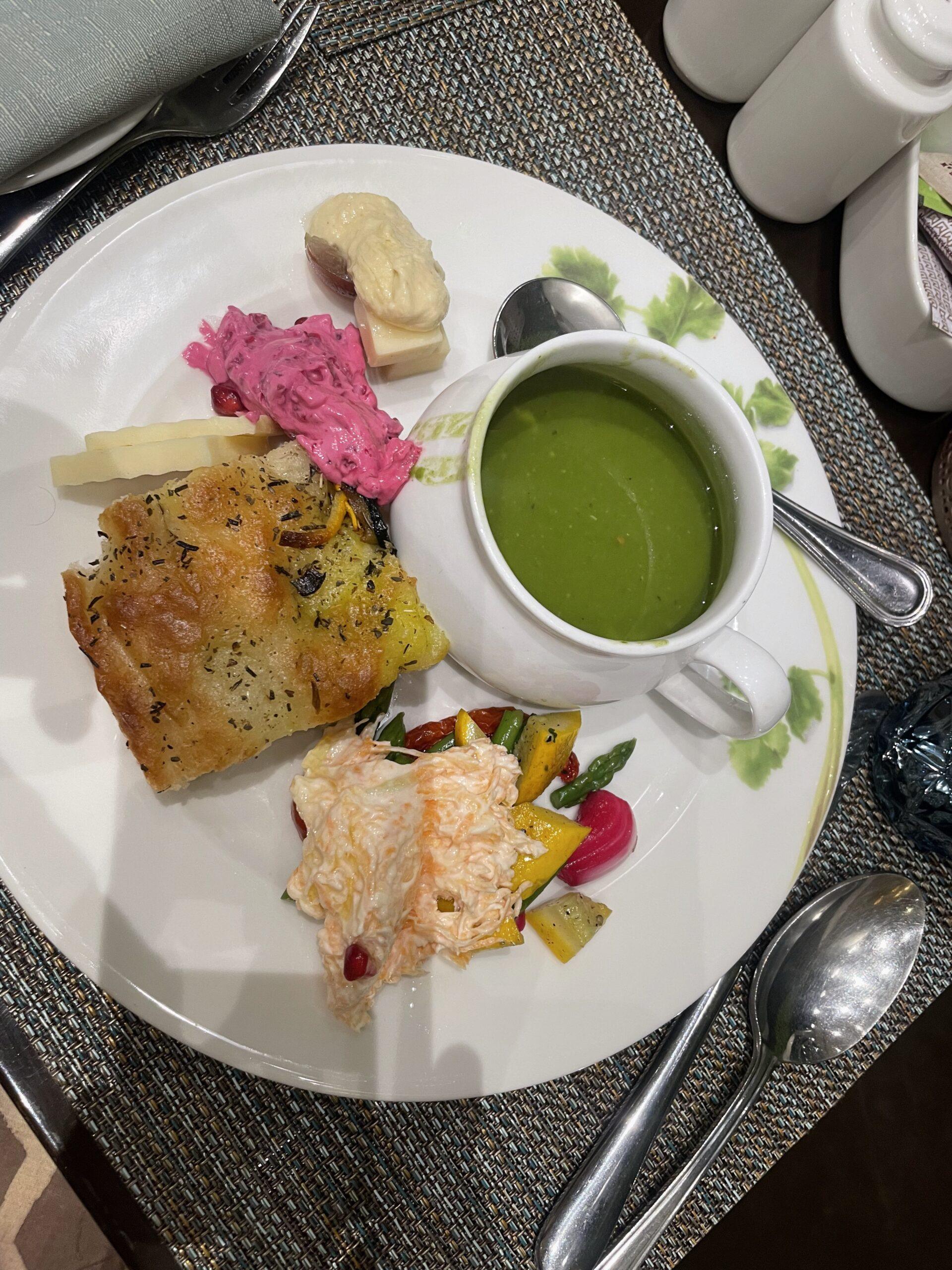 Dining at Cubbon Pavilion was a delight for the senses. The menu had an extensive spread across Indian and international cuisines, and we decided to slow down, savour the evening, and take it course by course. The Broccoli soup, the hot slice of pizza, the cheese board, the different kinds of hummus & other dips, the breads… I can go on…