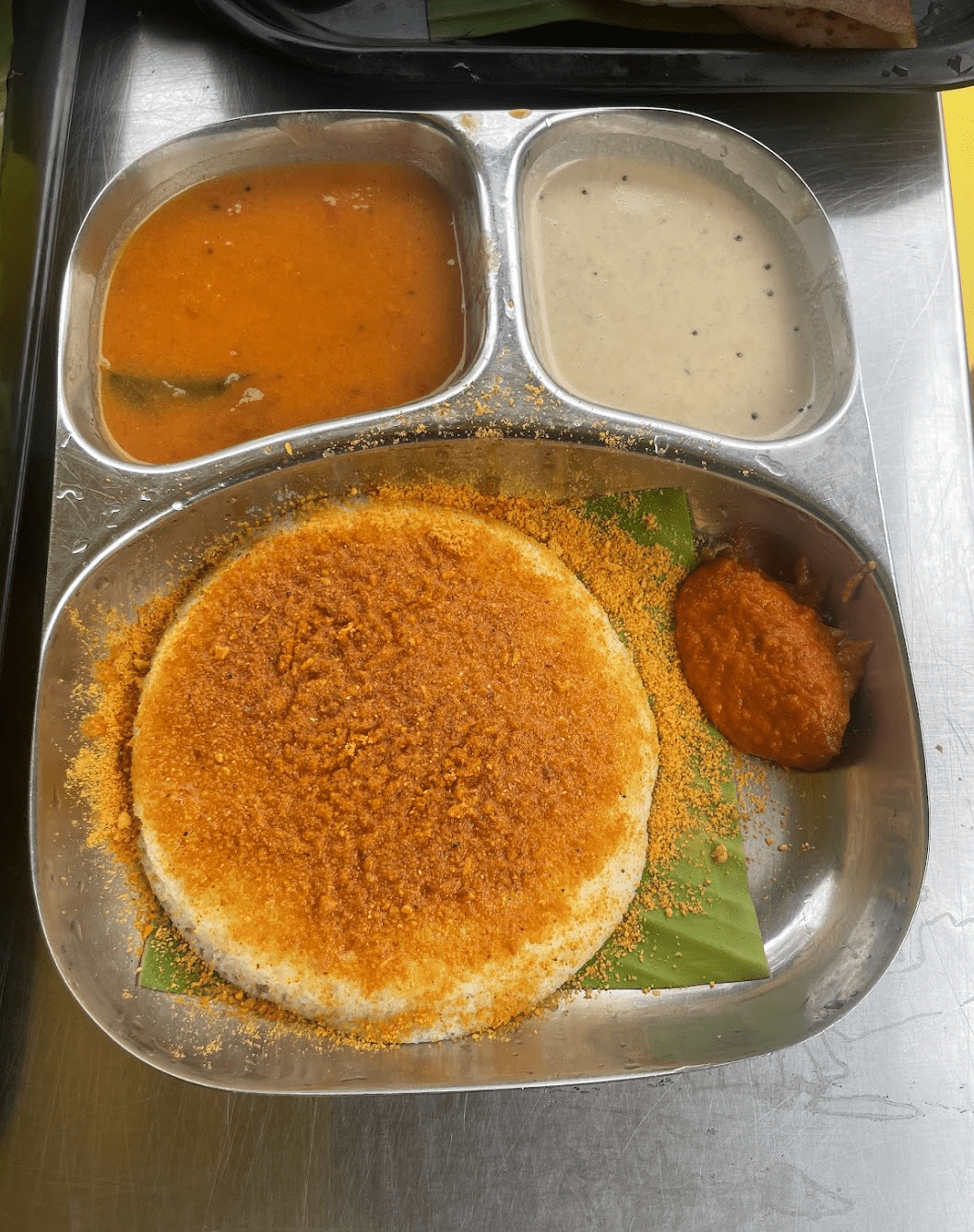You have to try the Podi Idli. It’s their signature and the reason for the frenzy. It was one big flat idli slathered with a generous dollop of fresh, melting butter and lots of flavour packed podi – served alongside their excellent, earthy sambar and two varieties of fresh, vibrant chutney. It’s a symphony of textures and flavors that is the very definition of comfort food.